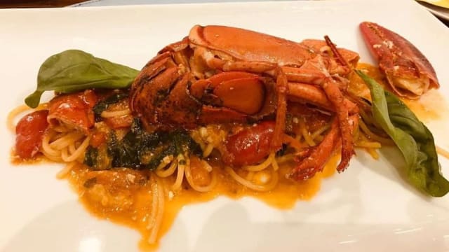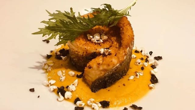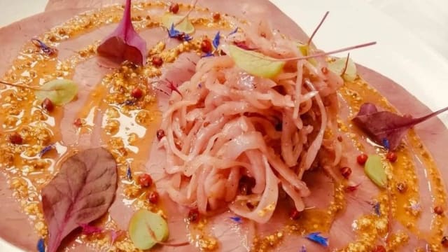 Base focaccia, maionese di polpo, polpo, stracciatella,spolverata di limone