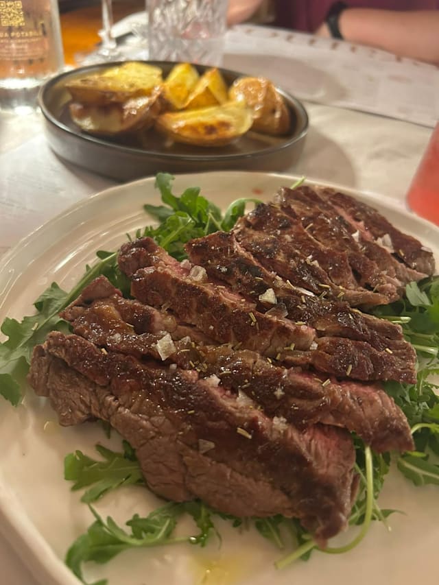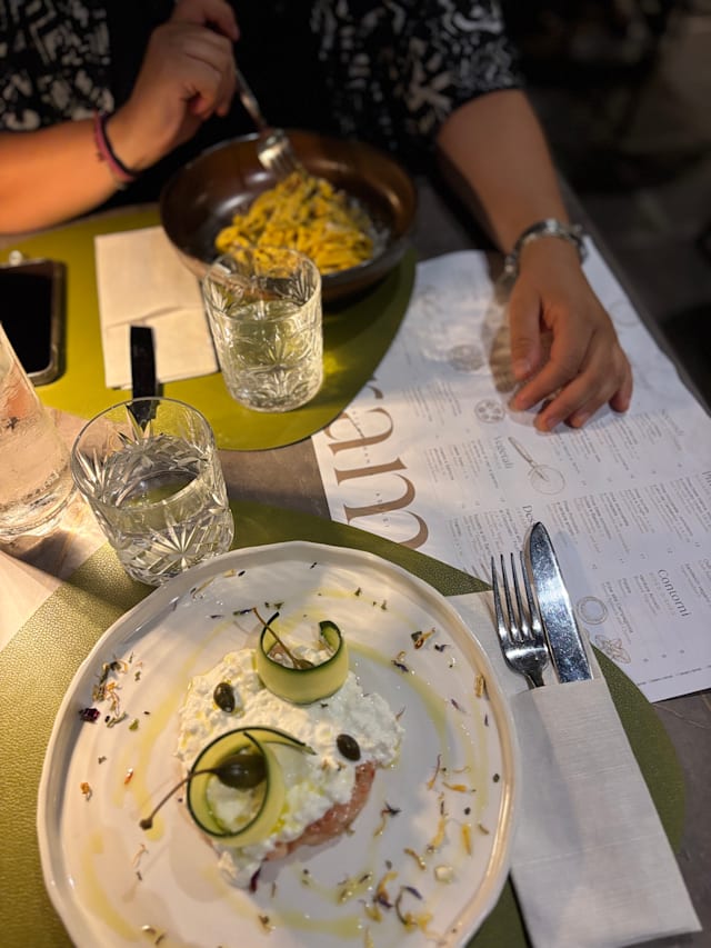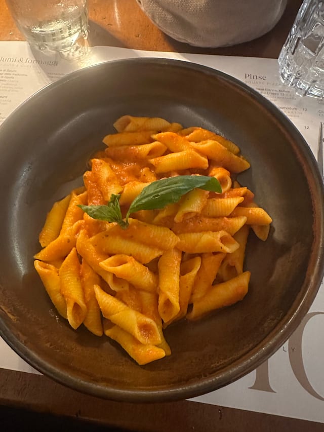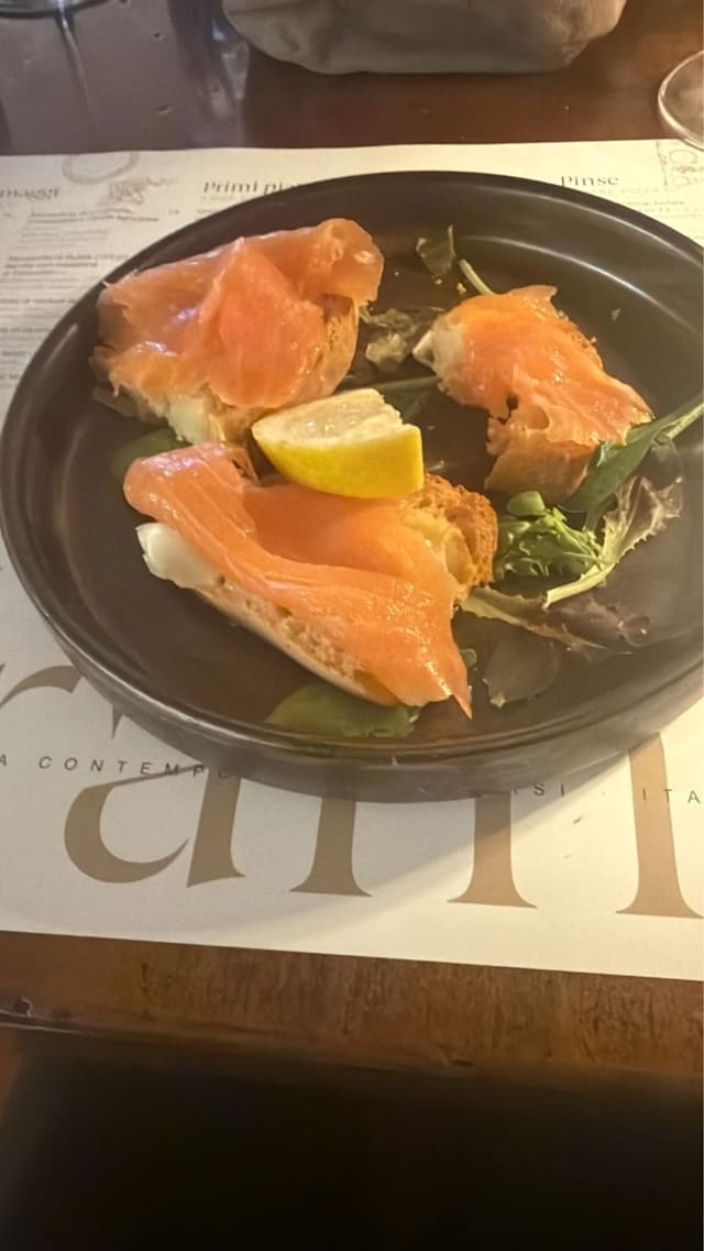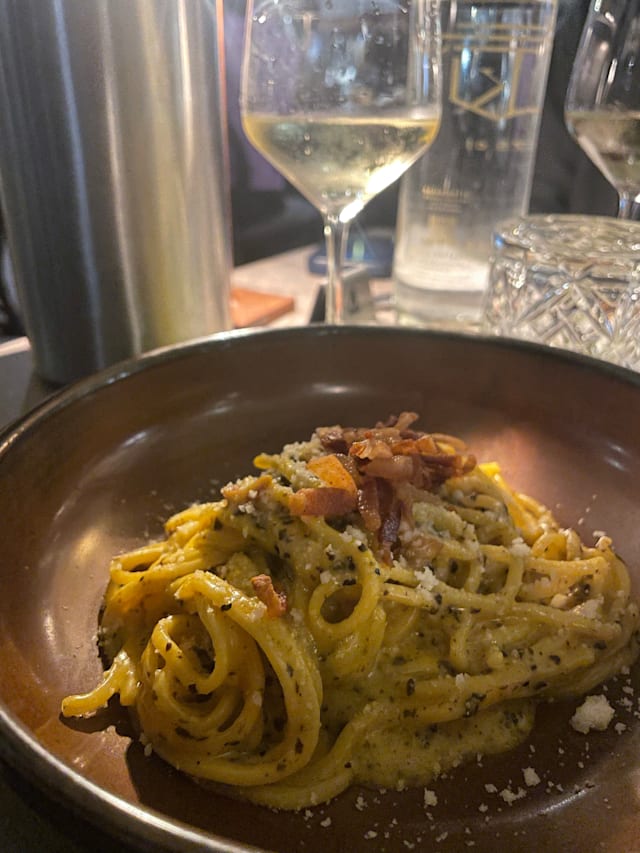 4.5/10We ordered appetizers and a pinsa, some wine. The wine was OK, appetizers mediocre, but then it really went downhill. I have eaten alot of authentic pinsas, but this one was soggy, I could not even pick up a piece. We will definitely not eat there again, overpriced and definitely not worth it