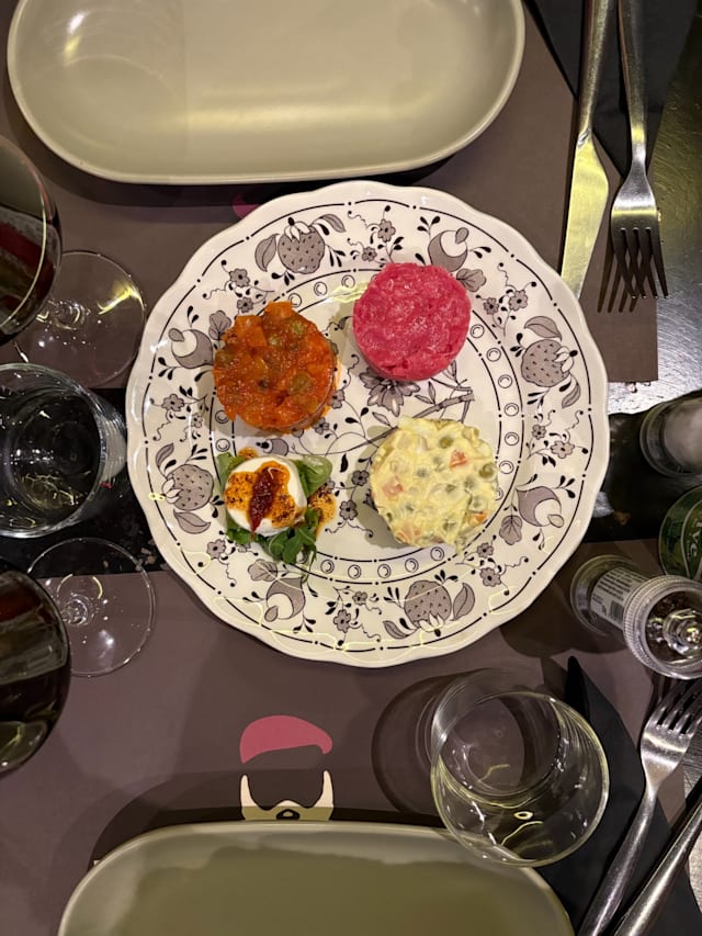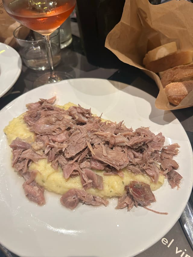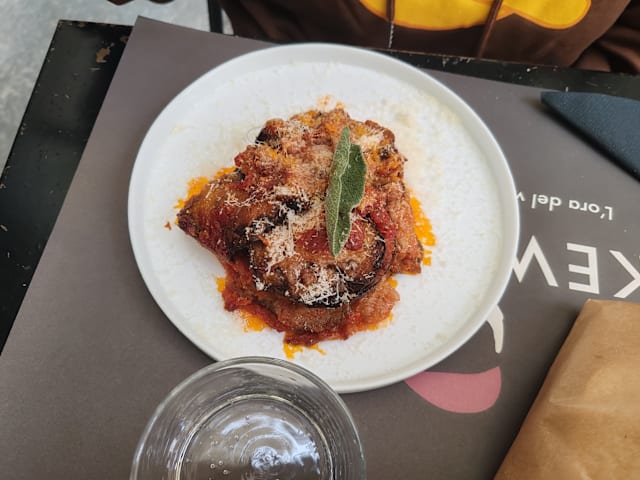 9/10Today for lunch my wife and I strolled to the Quadrilatero to enjoy a spot we’ve enjoyed on earlier visits: Kewinery. A very stylish spot with an excellent array of wines on their list and an excellent variety of good foods. I like the decor, with the touches of Art Deco figures on the walls. The proprietor is always pleasant and today’s servers were attentive and quick. My wine selection today was a very nice Nebbiolo, which I enjoyed with a Piemontese appetizer, a Giardiniera (a dish made with pickled vegetables) along with tuna. Quite nice though I thought the sumptuous sauce overpowered any taste of tuna. For the main course my wife ordered the Stinco di Maiale Sfilacciato (shredded pork shank). She definitely enjoyed it; I had a taste and thought both the meat and polenta were very nicely prepared. I ordered the very good meatballs in a delicious abundant tomato sauce (served piping-hot with two slices of toasted bread). A winner every time I try them. A very nice place to enjoy.