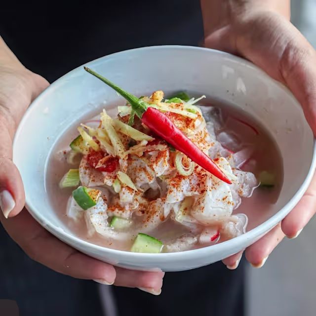 - Ceviche de daurade, crudités, vinaigre de coco