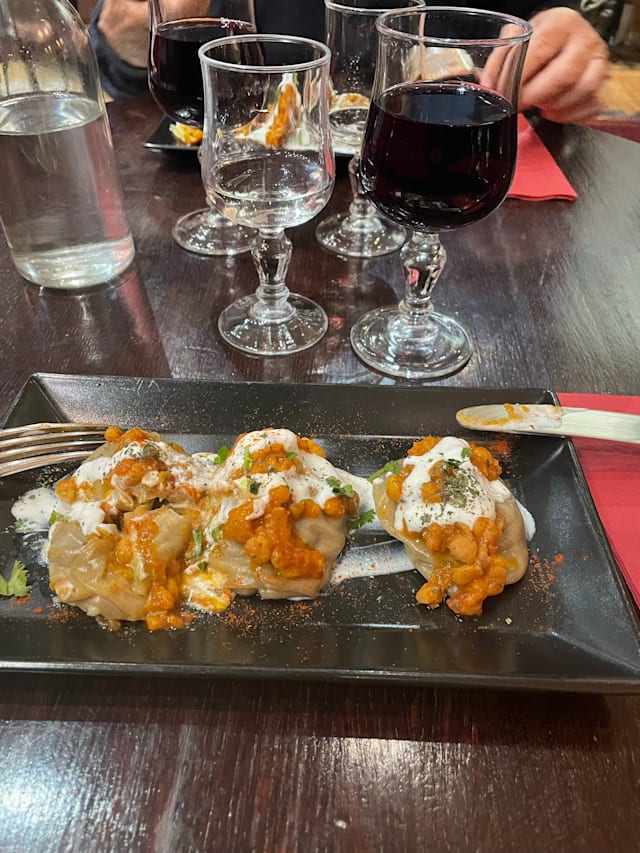 4.5/10The starters were amazing. We had the Aubergine dish and a lamb ravioli dish. For mains we had the recommended lamb and chicken rice based dishes. Both fairly dry dishes, the chicken was tastier than the lamb which was pretty bland. If I went again I would only have starters. Service was bad. 4 tables in a row had to stand up to go pay as the waiter was ignoring us. It wasn’t busy enough to justify the bad service.