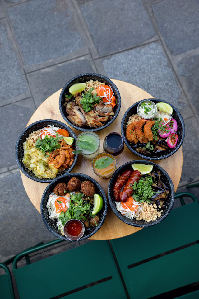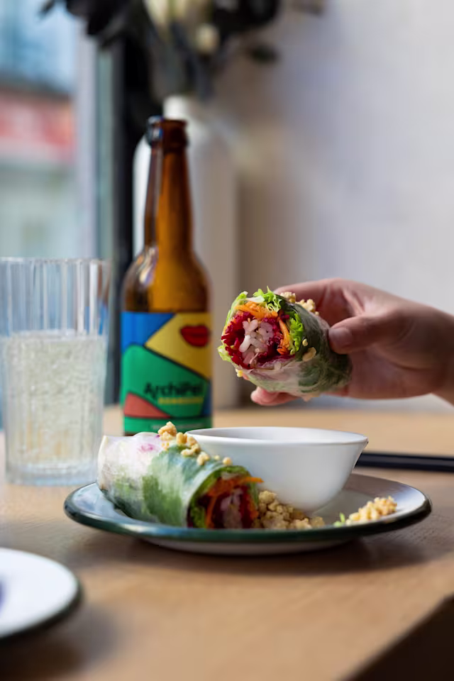 - Légumes croquants et herbes fraîches, roulés à la commande dans une tendre galette de riz.