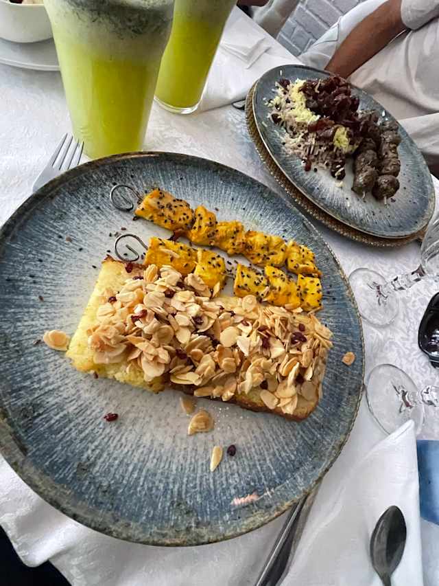 7.5/10As much as I want to support a Persian restaurant, the food was nothing close to Persian. We received sour chicken kebab, a strange Bakhtiari kebab that looked nothing like the real dish, and rice that felt more like Thai sticky rice than Basmati or Persian rice. There was no Persian chef, which made sense after tasting the food. The only positive point was the polite waitress who tried her best to make us feel comfortable.