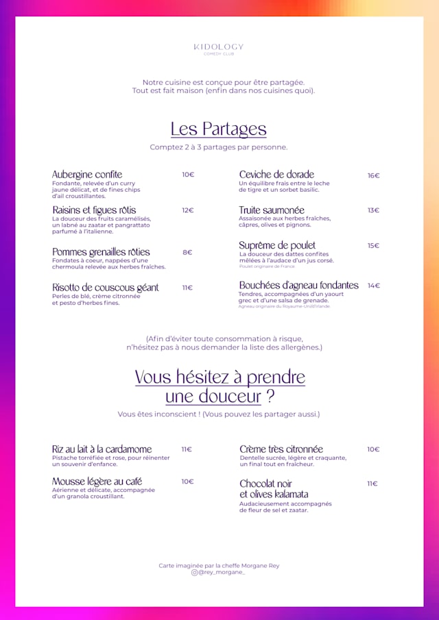 Thank you so much for your feedback. We’re thrilled that you enjoyed both the food and the show. Hope to see you again soon at **Kidology** for another great evening.