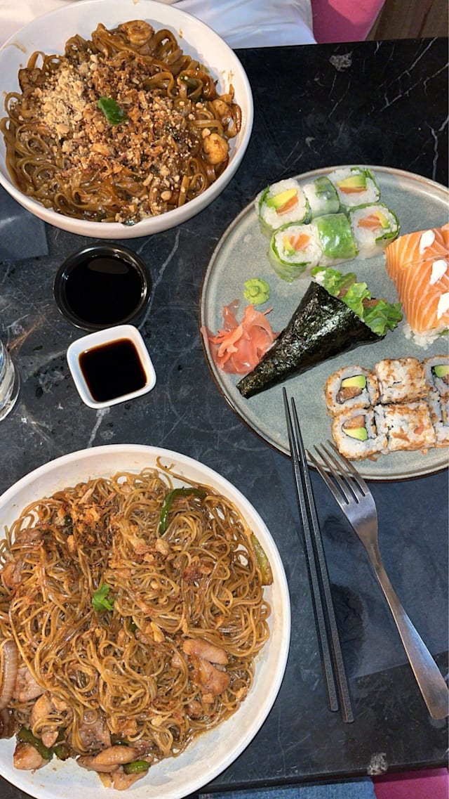 - Nouilles, poivrons, oignons, chou chinois, sauce maison, tofu.