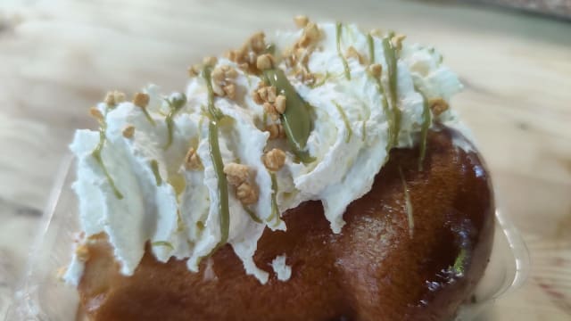- Sweet bun, pulled pork, coleslaw (insalata di cavolo e carote) (serviti con una porzione delle nostre patatine fritte classiche.)