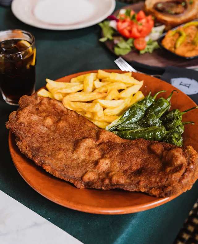 - Relleno de jamón y queso, empanado al estilo tradicional. Grande, jugoso y contundente.