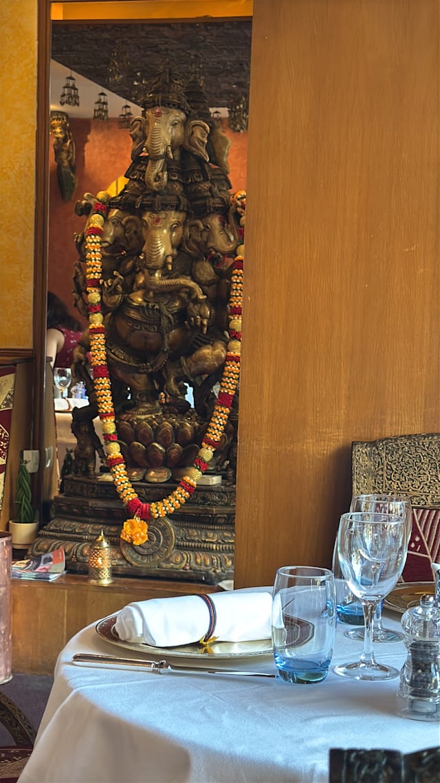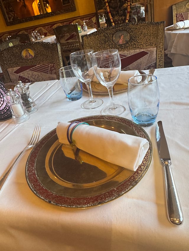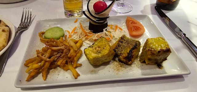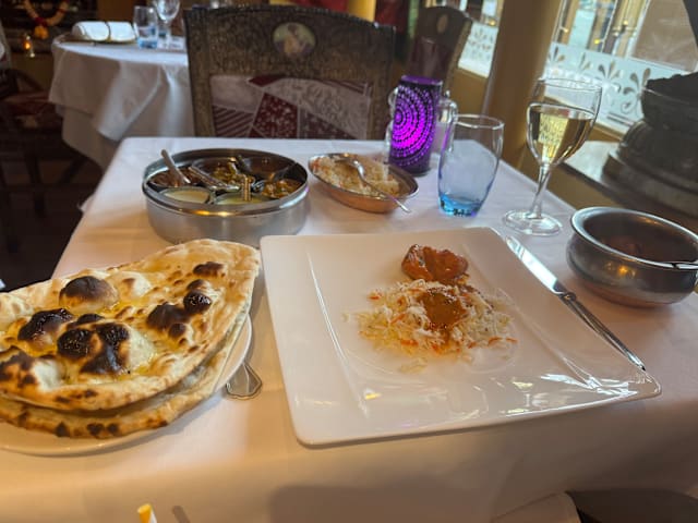 10/10A wonderful romantic dining experience. It’s a few metro stops from the Arc De Triomphe, worth the attention it receives. We stick with what we know with some variations: Fish Tikka Masala, Chicken Biryani, and regular naan. We had a half bottle of the Bordeaux you see in the pictures and it was very nice and drinkable for the price and compared to Napa reds. Overall, it was some of the most flavorful Indian food I’ve ever had. The fish Tikka Masala tasted very fresh with a hint of citrus. We finished with sorbet: lychee and ginger, a great palate cleanser.