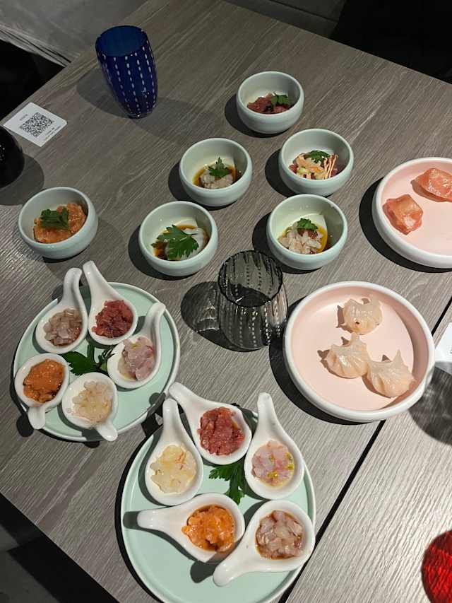 - Tartar di salmone e avocado guarnito con tobiko e pomodori secchi con salsa yuzu