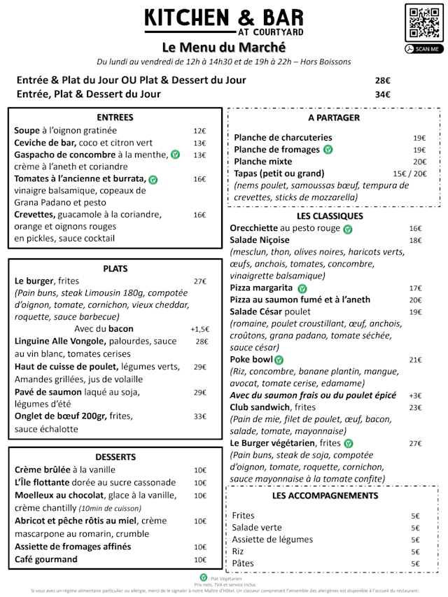 Bonjour, Merci pour votre message. Nous attachons une grande importance à vos retours, qui nourrissent notre envie de toujours mieux faire. Ce fut un moment agréable à vos côtés. À très vite dans votre restaurant Kitchen & Bar. Tony Responsable de la Restauration