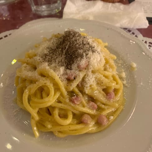 6.5/10Kind of a cute place. Little hidden. The food was ok. Very basic. My caccio Peppe was not eatable. Way too much pepper. The others said it was ok but nothing to brag about. The owner spend a lot of time with regulars. I didn’t feel very welcome. Also had to chase the bill. If you want cheap simple food and you are close by it is ok. I wouldn’t go back