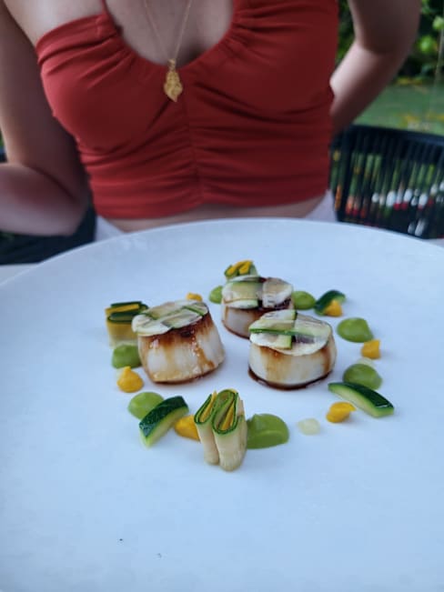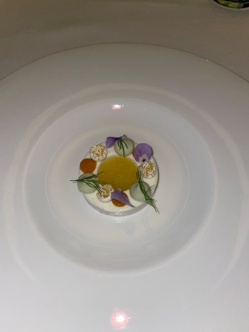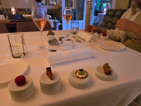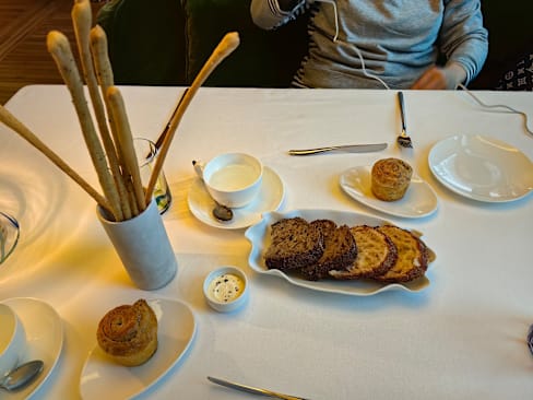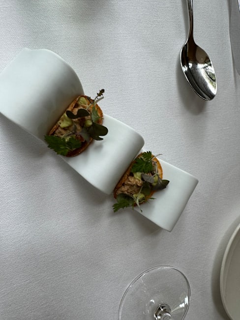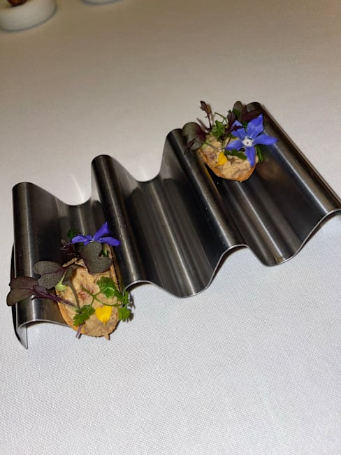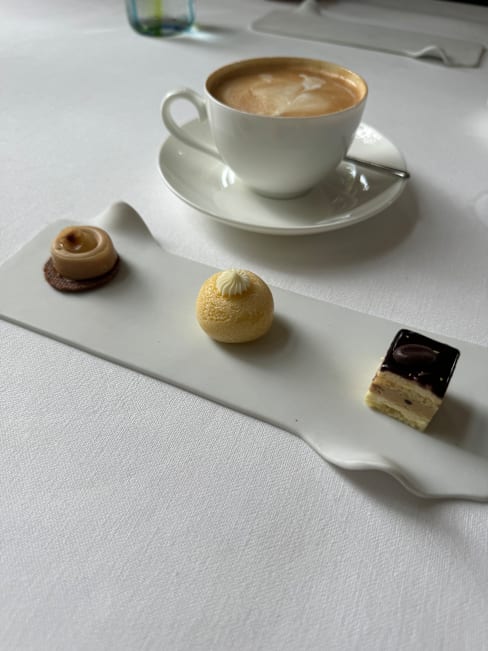 10/10+4Phenomenal lunch. We couldn’t stay for the full experience due to our schedule but they gave us the most incredible experience, including graciously expediting the bill in a way that felt so seemless—hugely valuable when you’re trying to make it to a wedding ;) The food was honestly the best we had our entire trip, as was the service. The atmosphere was dreamy and comfortable even on a rainy day. I would absolutely recommend making time for this. The whole bill for two, which included two courses and two glasses of truly incredible (and well recommended) wine each (so four plates, countless little chef gifts/treats, and four glasses) was under 225 euros. I wish we had time to have had the full tasting menu. Next time! A fantastic Michelin star-worthy lunch without any feeling of pomposity or formality—it was approachable and still flawless, with a menu that anyone can enjoy. Make time for it, even if you only have a small window- just let them know you’ve got to be quick. I’ll be asking our local wine shop to special order the wine I had there, and I’ll be dreaming of the food for quite a bit.