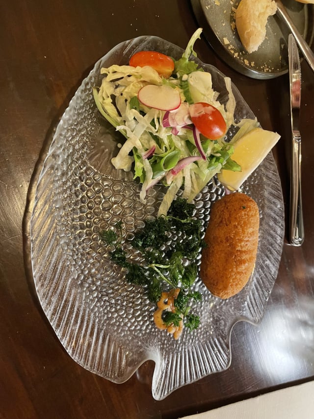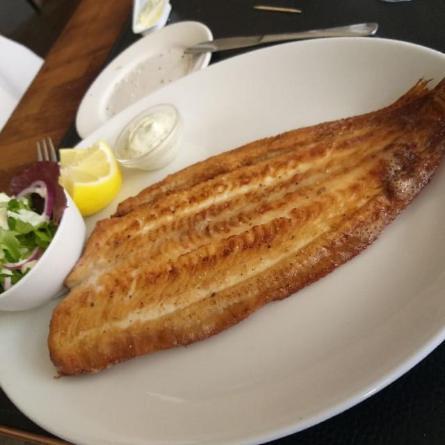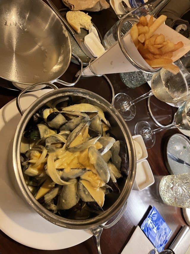 7/10Booked for a really early dinner and after a bit of checking and pondering got “upgraded” to a table at the window (the weather was doubtful and not all tables on the terrace are guaranteed to remain dry in spite of the large parasols). Shrimp croquettes were found to be tasty and with a good mix of shrimp and not too running filling. No problem at all for the younger one to select the burrata starter as a main dish: tasty but quite a mouthful with pretty limited ‘accompaniments’. The Dover soles were a bit too dry. I got tempted by the mussels with curry and did not regret: good size, well cooked and with sufficient onion and celery in addition to cilantro. The curry was a bit thick but made for a great soup with the cooking juices of the mussels. Friendly and professional staff. So a tough one, this … as The Fork doesn’t do half plate scores … As soles should be what they do really well, I am stuck with 3 plates but will happily give New Amsterdam another try soon.
