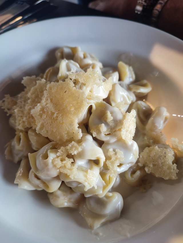 - Tortellini emiliani, fonduta e cialda di parmigiano reggiano DOP