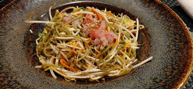 - Hosomaki con avocado e philadelphia avvolto in pasta kataifi tempurata, Tartare di gambero rosso, salsa Thai a base di erbe
