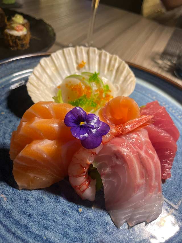 - Salmone, avocado, capasanta scottata a fiamma viva, salsa spicy, tobiko