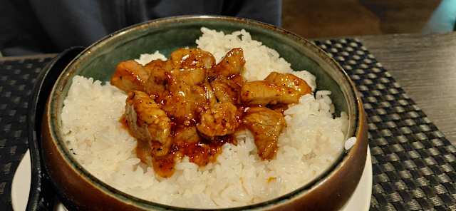 - Riso, gamberetti saltati , teriyaki , verdure miste saltate