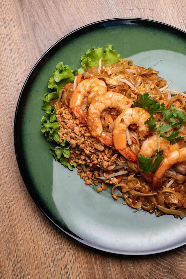 - Plat emblématique de la thaïlande, émincé de poulet sauté aux vermicelles de riz plats, légumes, cacahuètes, soja, petits oignons, coriandre, oeufs brouillés, sauce du chef