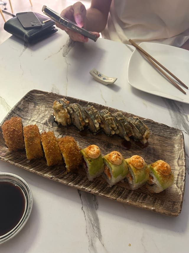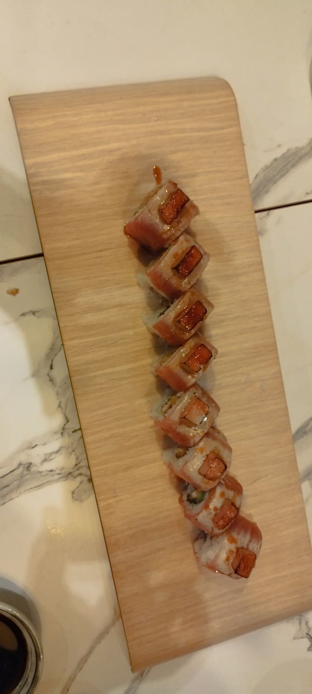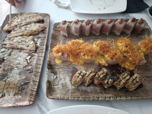 10/10Some of the best sushi anywhere! This is a truly wonderful spot for either a quick (by Spain standards) bite with a beer and some starters, or a delightful foray into fusion sushi with just the right amount of Spanish influence. Just watch out, you will almost certainly order too much food because everything looks so good. Remember, the QR code menu goes on for a while. During my first visit I did not realize there was a lot more to the menu after I saw the sushi roll section. Do yourself a favor and scroll all the way down. It's a great place, in a great neighborhood a bit away from the tourist area. Good selection of wines that complement the great food. You might want to make a reservation. While the place is not small, it fills up fast at night. Don't forget to check out the origami hanging from the ceiling, it is really fun. Enjoy! JT
