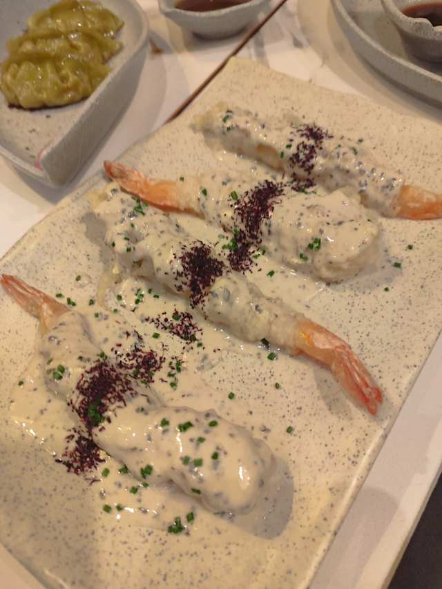 - Shiromi, aguacate, langostino empanado, boniato frito, salsa de ají amarillo y ceviche de shiromi.