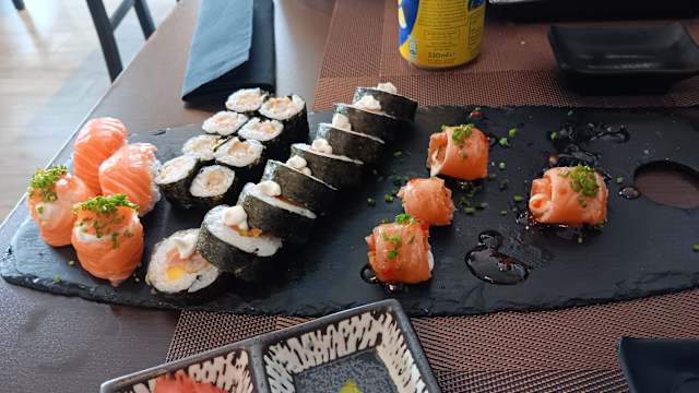 - 16 Sashimis, 4 nigiris, 4 gunkan, 5 hossomakis, 16 huramakis