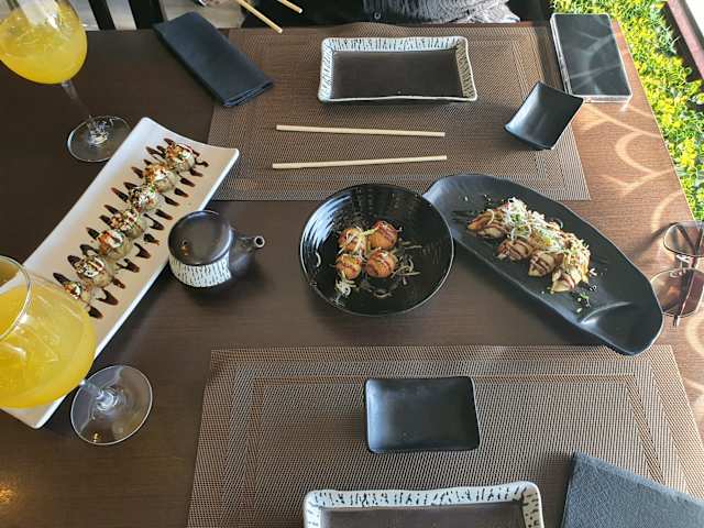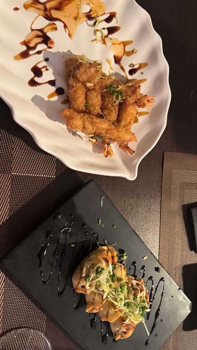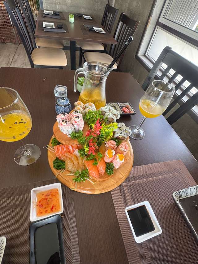 - Camarão panado, queijo creme, finalizado com uma capa de abacate, molho do cheff e ovas