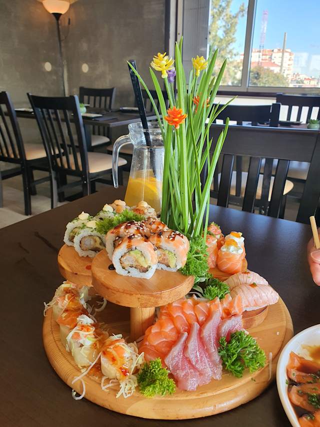 - 21 Sashimis, 4 nigiris, 4 gunkan, 8 hossomakis, 30 huramakis