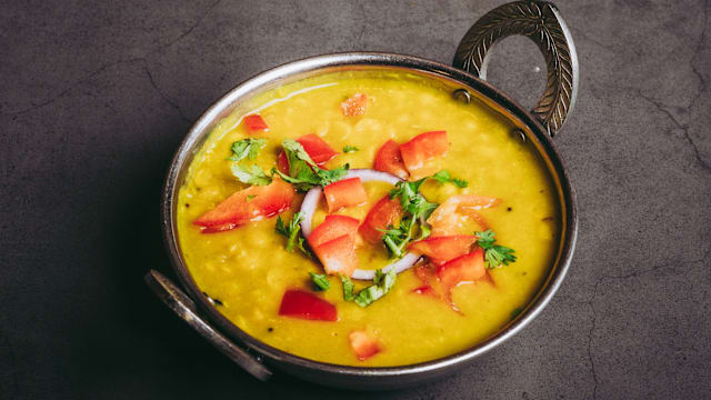 een smakelijke linzen soep uit Noord India, gekruid met verse koriander en citroensap