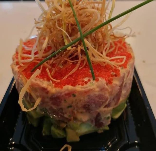 Atum, foegas, maionese japonesa, tabasco e alho francês