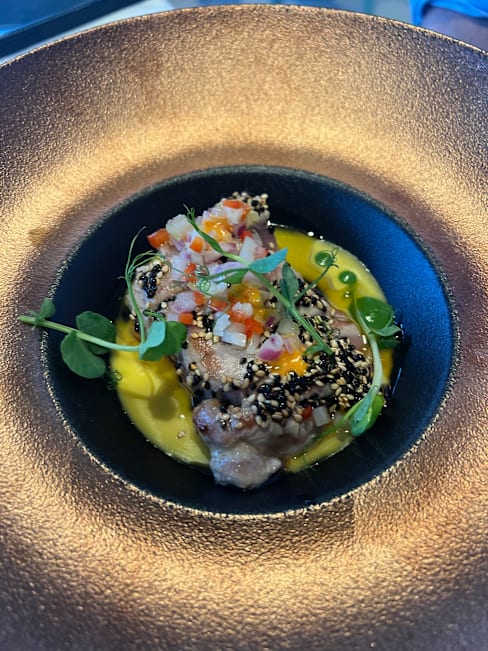 9.5/10Excellent fresh seafood. It was prepared beautifully. We started with tuna tartare and seared scallops. Both excellent. The smoked spaghetti with clams was a different (for me) and fun twist on classic clams and linguini. The octopus was divine!