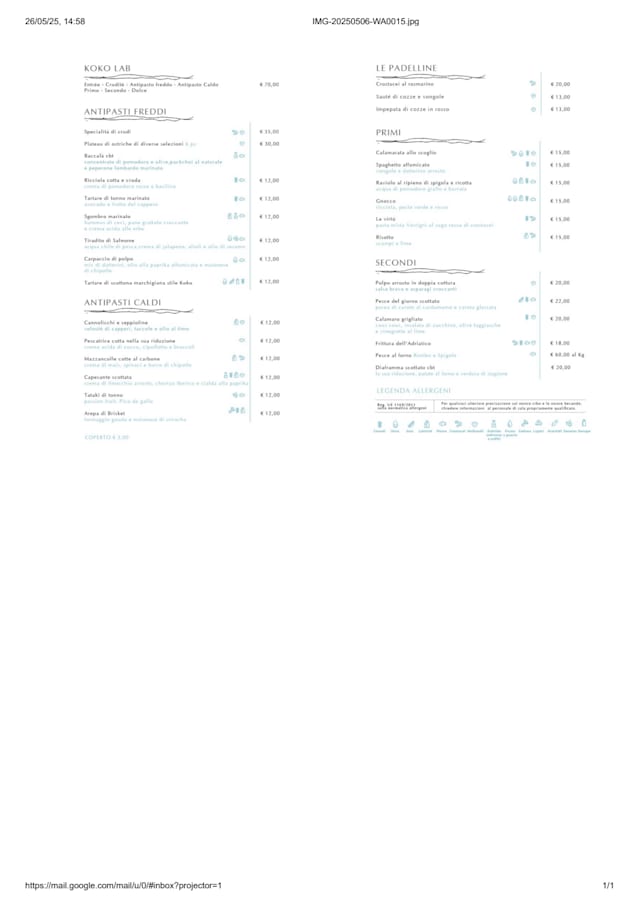 9/10It would have earned a 10. However, there were two minor incidents and one major incident that resulted in this final judgement. The two minor ones: we ordered frizzante water and got naturale. I got no sugar offered with my caffè corretto. And this leads to my major complaint. When I ordered my corretto and asked to have it with Mistra (for those who don’t know it, this is a typical spirit in the area) the waitress made a very astonished face and asked with a voice filled with indignation “Mistra?!? Here ?!?” I answered yes. I got my corretto. Nevertheless, I have experienced such a situation before in restaurants that do not have the level of the Koko Beach. Despite of that the personnel was much more professional to handle the fact that they do not have Mistra. Instead they were sorry about that fact and offered a substitute instead (Varnelli, Merletti, Sambuca,…)