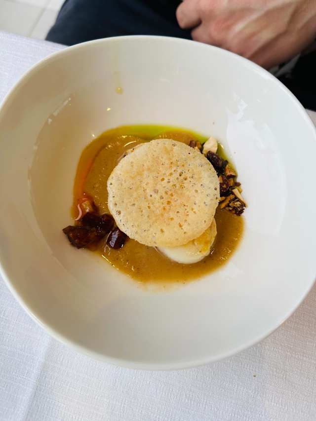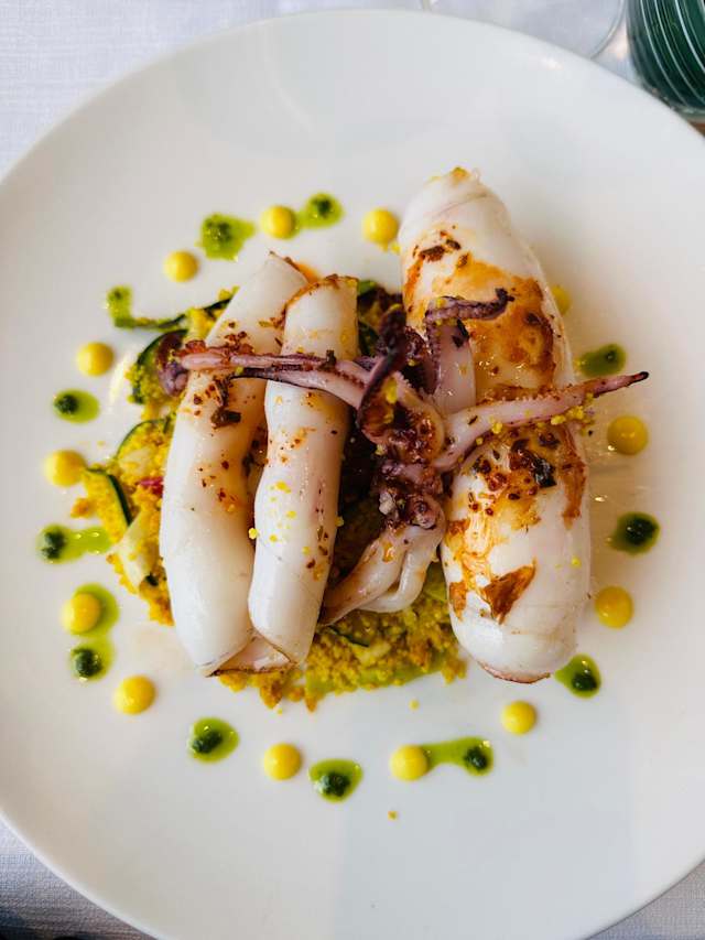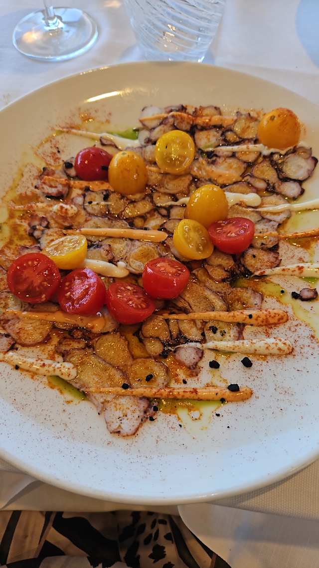 10/10Perfect spot for an amazing vista, exceptional service and an elegant meal! As a solo diner, I felt welcomed and was never rushed and I feel like I was even given the best table in the restaurant. The tuna carbonara was delicious and the portion size was more than I could possibly eat after starting with the grilled gamberone. The charming waiter suggested a sparkling Passerina (Velenosi) which paired perfectly with both courses. Great meal!