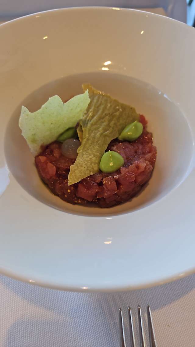 8.5/10We really enjoyed the food and the view. Starters, main course and desert were all really good. We especially enjoyed the sushi starter and the octopus. Great wine selection to choose from.