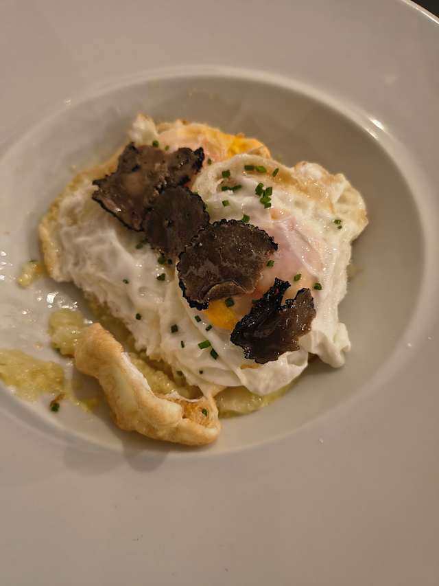 7/10Found this restaurant while in Madrid for 24 hrs. The staff was inviting and the space very clean and lovely. Be sure to request pairing advice - the red wine (which was delicious) did not pair well with all the cheeses on our cheese board nor one of our entrees. Speaking of entrees, unless you really enjoy VERY fishy goods cover in heavy cream sauce, I would suggest avoiding the sea crab and crawfish lasagna (Sea Crab Lasagna). To also clarify... the Iberian Sirloin is pork sirloin not beef - served is 2 breaded meat balls. The apple pie was more of a tart than a pie... but good flavor especially when paired with the pecan ice cream.