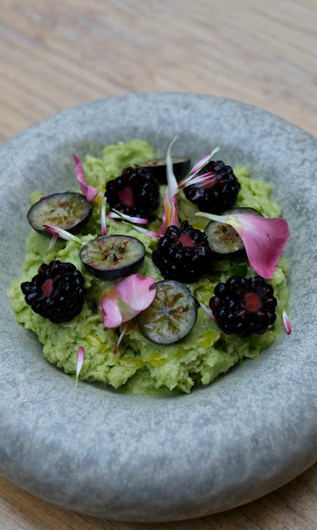 - Puerros, Veluté de Verduras Tostadas y Crema Tamarillo