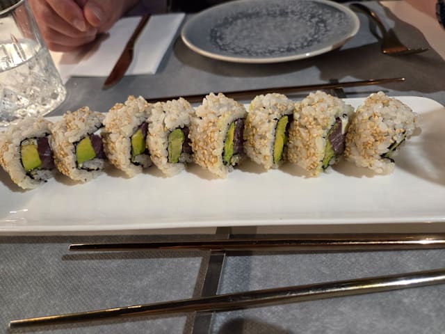 5.5/10There was only one server and it took him quite long to get to us with the menu, for the drinks we wanted to order and finally the food. The ambience is pretty cute but it’s mostly the street not the restaurant. The salmon sushi was good but the noodles weren’t great. It wasn’t so bad but I personally don’t think you should go out of your way to go here. The server was nice though! :)