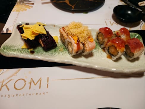 8.5/10It's my second time here at Komi Sushi and I had a wonderful experience! Good food and variaety on the menu and the location it's perfect for couples and groups of friends. I think we'll be back!