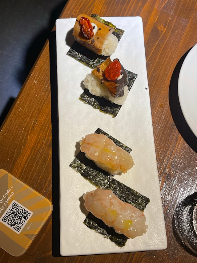 6.5/10I recently visited this restaurant and found the experience to be quite mixed. The quality of the fish was just okay, offering a taste that was acceptable but not particularly memorable. While the rice used in the sushi was far from authentic Japanese sushi rice, it did have a surprisingly good flavor that complemented the fish well.The soy sauce provided was a lighter version than what I am accustomed to, which might appeal to some diners looking for a less intense flavor.The service staff were friendly and welcoming, which added a positive touch to the dining experience. However, they struggled to explain the dishes in English, which could be challenging for non-native speakers seeking to understand the menu better.The restaurant's ambiance was truly impressive, creating a comfortable and aesthetically pleasing environment to enjoy a meal. Unfortunately, this attention to detail did not extend to the restrooms, which were not up to the standard of the rest of the establishment.