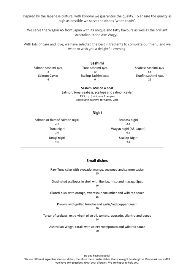 10/10The whole experience of Konomi is unique. The food is beautifully prepared, the atmosphere is both intimate and friendly. For anyone who loves Japanese cuisine this is simply an unmissable experience. Absolutely fantastic. Thank you .