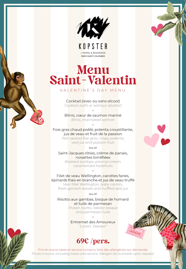 Menu saint-valentin €69 per guest