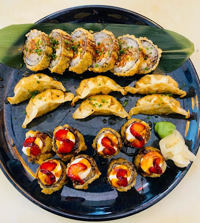 inclui entradas/ starters gyozas/ miso shiro/ hot roll