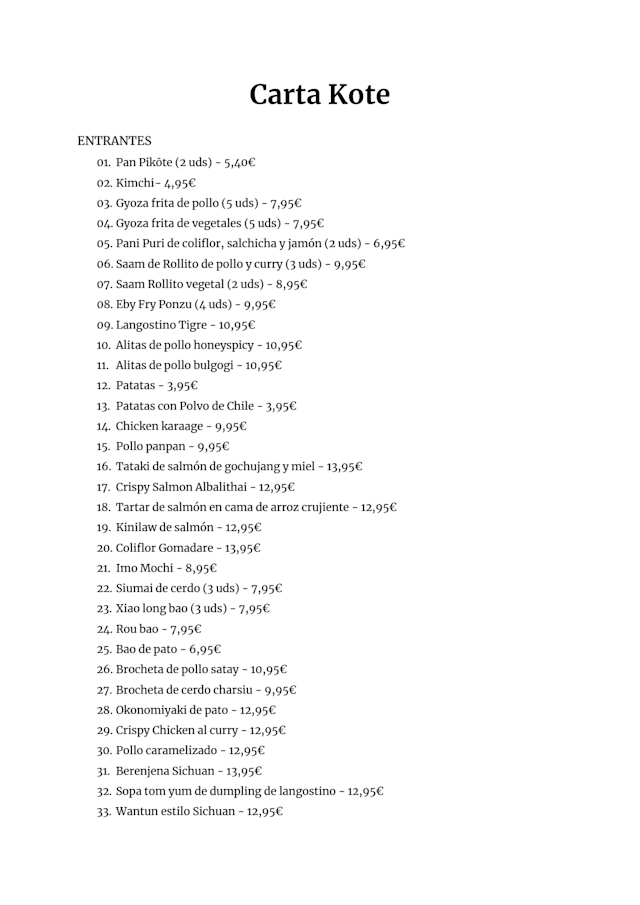 Menú del Día €14.95 per guest