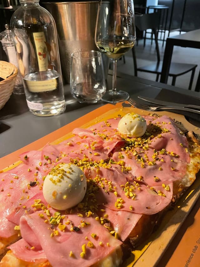 Mozzarella, mortadella, burrata, granella di pistacchio
