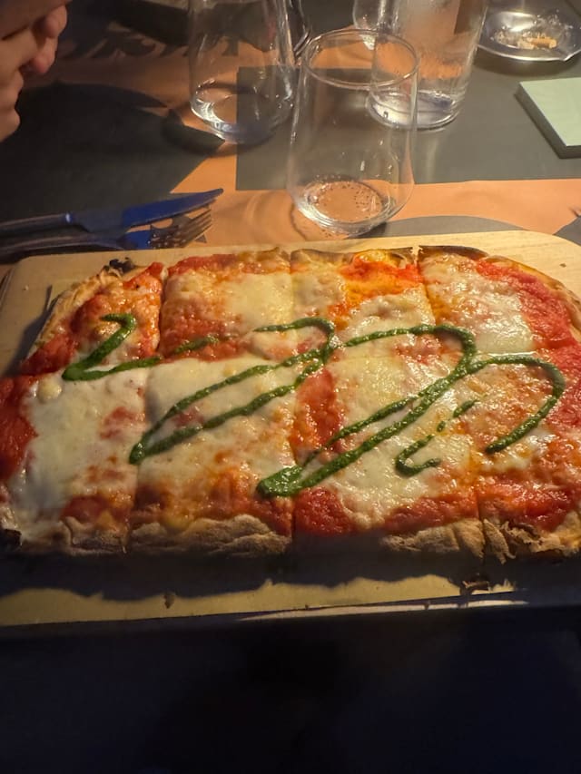Pomodoro, mozzarella, finocchiona, burrata e salsa al basilico