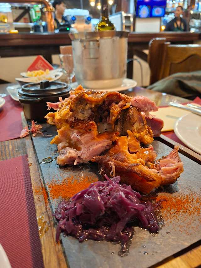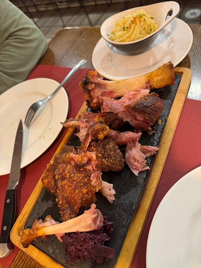 9.5/10Tucked away in a corridor is a fantastic find if you like German food. We had the codillo (pork knuckle), currywurst and pretzels, as well as a couple of beers, and apple strudel for dessert, which we had to take home because we were so full! All were delicious and the portions were good.