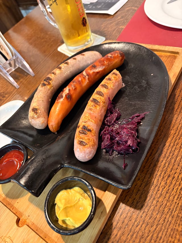 We’re truly sorry to hear that our dishes didn’t meet your expectations. However, we’d like to clarify that the sausages served were in perfect condition. After receiving your feedback, we tested them ourselves and confirmed that both the flavor and quality were exactly as they should be. Our sausages are made in Germany by a skilled butcher, following a traditional and authentic German recipe. You chose to have the Weisswurst grilled (barbecue style), but it's worth noting that this type of sausage is typically served boiled. This may be why the taste differed from what you’re used to. As for the Spätzle, they are prepared with cheese and butter, again using a traditional German recipe. We take pride in offering authentic flavors, and we appreciate your feedback as it helps us continue to improve.