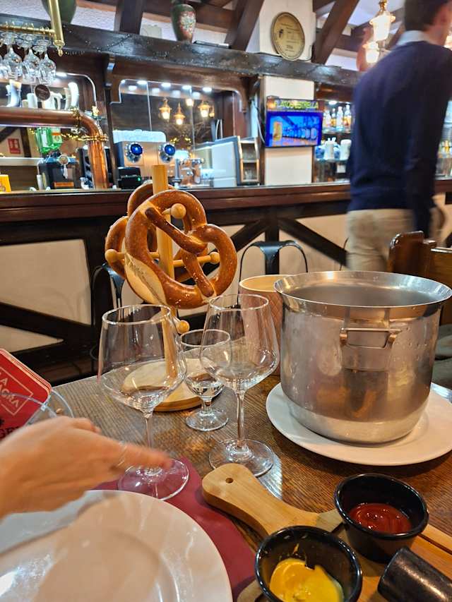 3.5/10You walk into the restaurant and immediately notice a strange odour. No waiter came to assign us a table. We asked for our reservation at the bar. The barman was grumpy. We were told to speak to one of the waiters. After we finally got a table, we ordered: Cheese spaetzle and Weißwurst with pretzel. The cheese sauce on the spaetzle is a joke, has nothing to do with cheese, it's rather oily. And the Weißwurst tasted sour, which is a sign that the sausage had gone bad. We told the waiter this, but he denied. We had to pay for the dish. The waiter was also visibly annoyed and checked every few minutes to see if he could finally clear our plates. As a German I have to say: I have never eaten this dishes so badly.