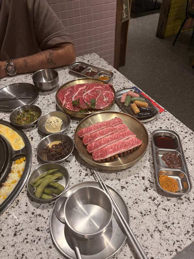9/10Very good experience and food. The meat was delicious and the bibimbap amazing. We got the platter for 2 and it was plenty of food. Service was OK. The ambiance was amazing though and the bbq experience was cool. I would repeat.