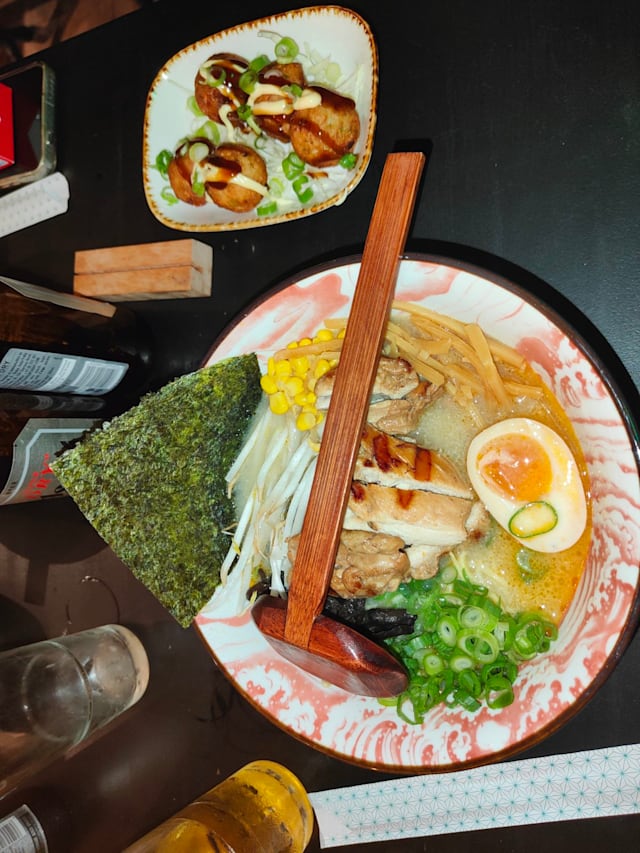 We are located in the middle of the Dapper market on the Dapperstraat 34A. What we are making is a truly authentic ramen broth that we cook for twelve hours to get the best taste. The chicken and pork ramen that we make is very delicious, and our chicken ramen is 100% halal.