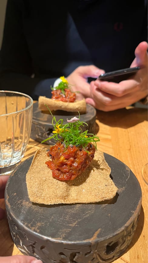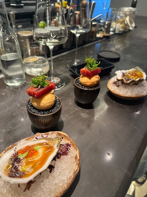 9.5/10+3The tasting menu was a one-of-a-kind experience to celebrate 4 years with my partner. The waiters were very kind, professional, and knowledgeable. I appreciated that they offered to make modifications at the beginning. The atmosphere was fun, with intense house music making each dish even more epic. We did, however, feel a bit neglected after asking for water and getting forgotten about 4 times.